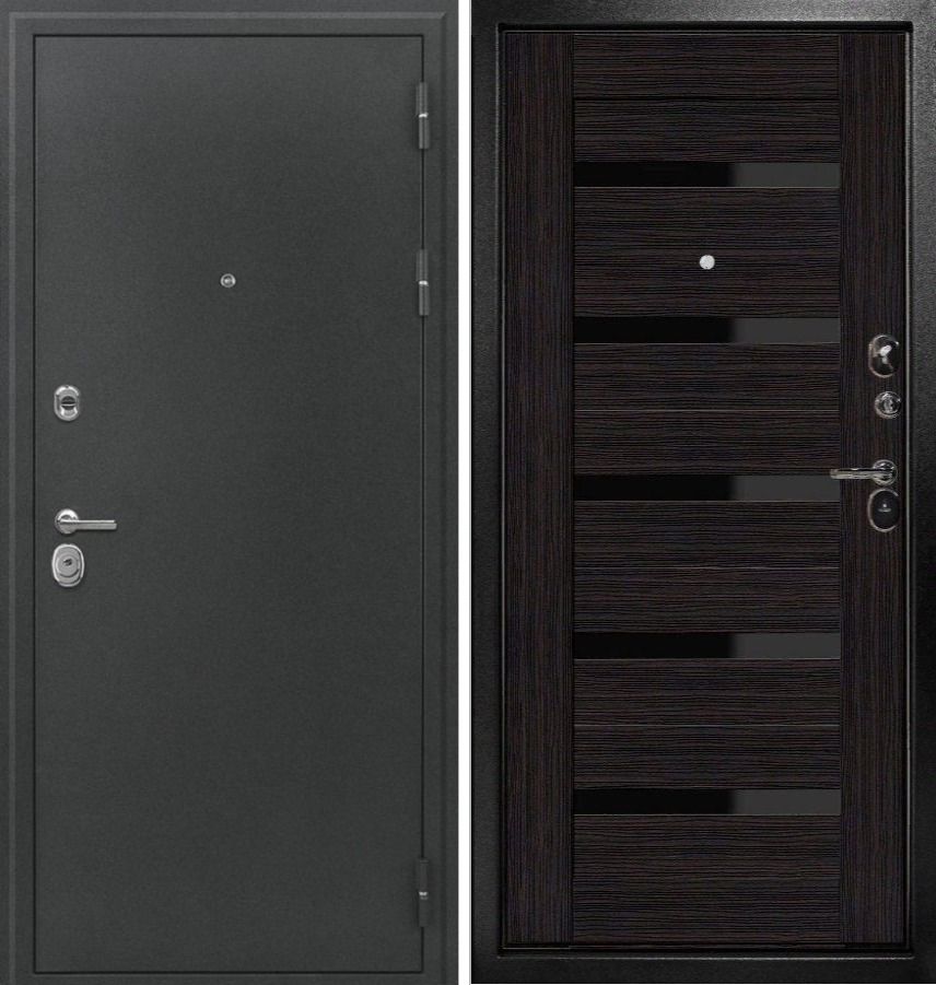 Внешнее/внутреннее покрытие: «Антик серебро» / царга 22 мм венге/ черный лакобель стекла Толщина дверного полотна/короба: 100мм/120мм