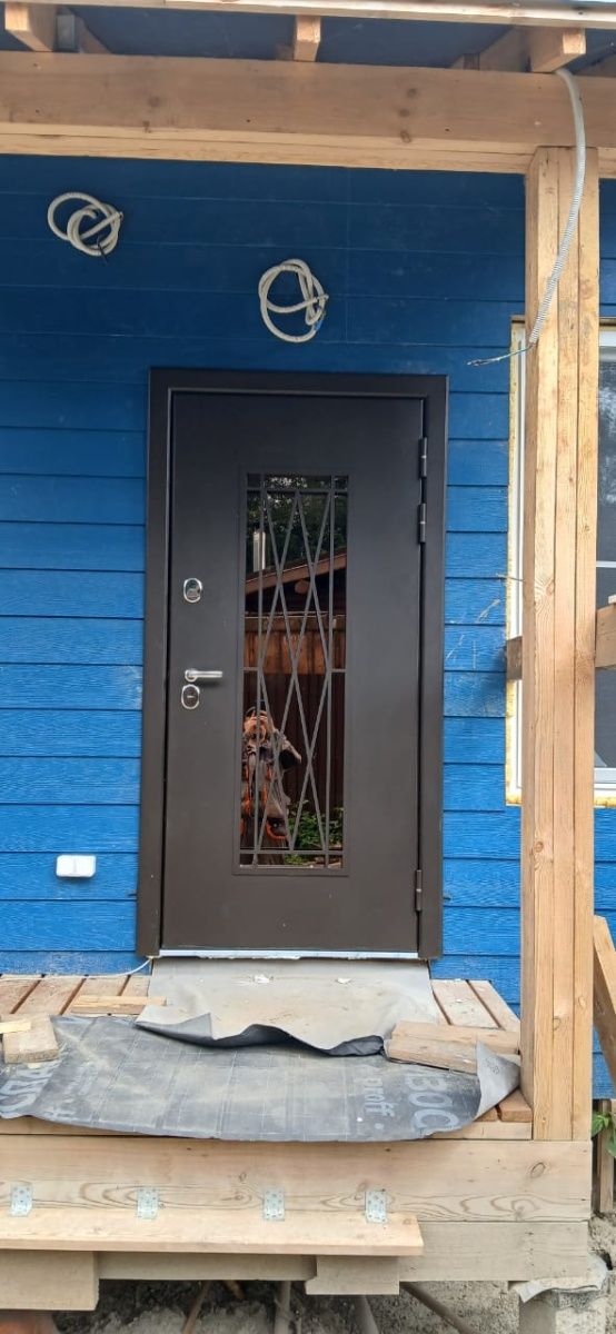Входная дверь Ретвизан ВЕСТА MAX Дуб полярный - RAL 8019 или Муар Кортен стеклопакет, решетка снаружи — купить в Омске в компании RosDoor (Сталь-сервис)